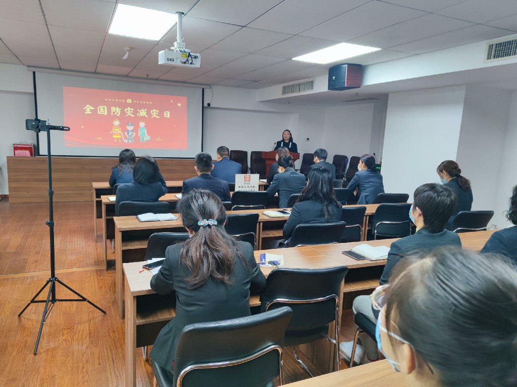 活动期间,各分支机构充分发挥职场宣传教育主阵地职能,一是在晨会通过PPT,在日常通过职场电视滚动播放《减轻灾害风险 守护美好家园》主题宣传课件,向广大职工和客户普及自然灾害的危害以及预警、防治措施等实用知识;二是在职场醒目位置张贴防灾减灾倡议书,进一步提升员工和客户对防灾减灾工作的关注,引导形成人人参与,共建平安的良好氛围;三是开展对办公职场的风险隐患排查,强化风险隐患的实时监测、动态管理,提高应急处置能力。