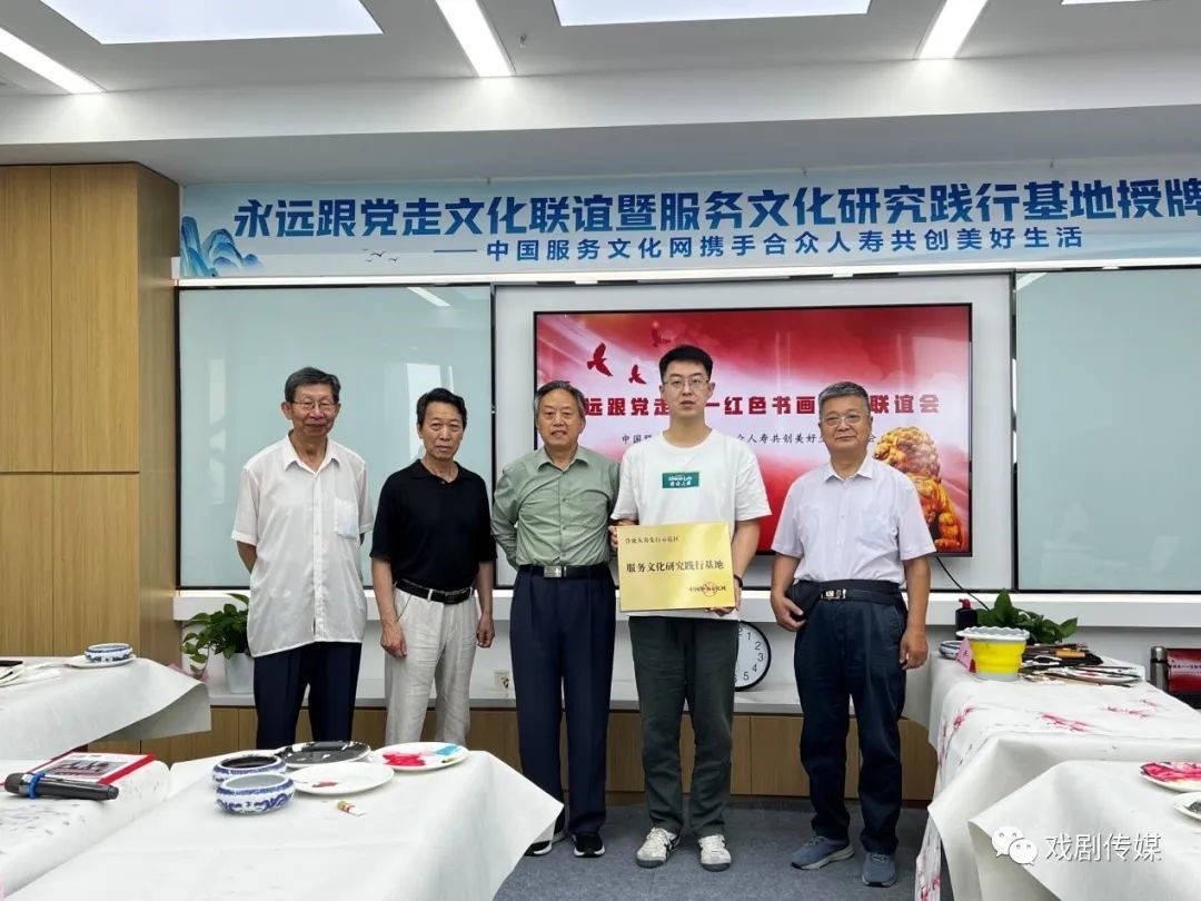 随后,河北省政府参事室研究员、中国服务文化网总服务师陈步峰教授向老领导和书画家赠送了服务文化书刊,感谢他们多年来对文化强省建设的关注支持。并感谢合众人寿石家庄先行示范区今日多连举办的文化活动,弘扬了先进文化、促进了文化强省强市强企的建设,被授予“服务文化研究践行基地”牌匾。