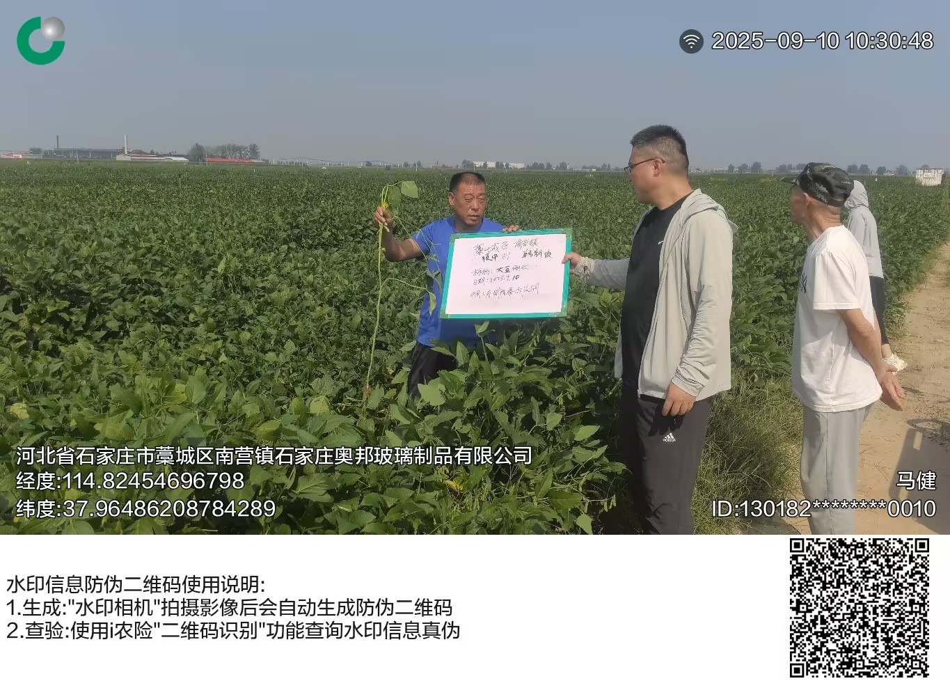 2025年9月大风天气频发,导致大豆作物倒伏,由于豆科类作物密度大,出险倒伏后仅凭照片无法判断,国寿财险石家庄中心支公司农险理赔岗应县支与农户要求,前往现场实地查勘,了解损失面积,查勘损失程度。