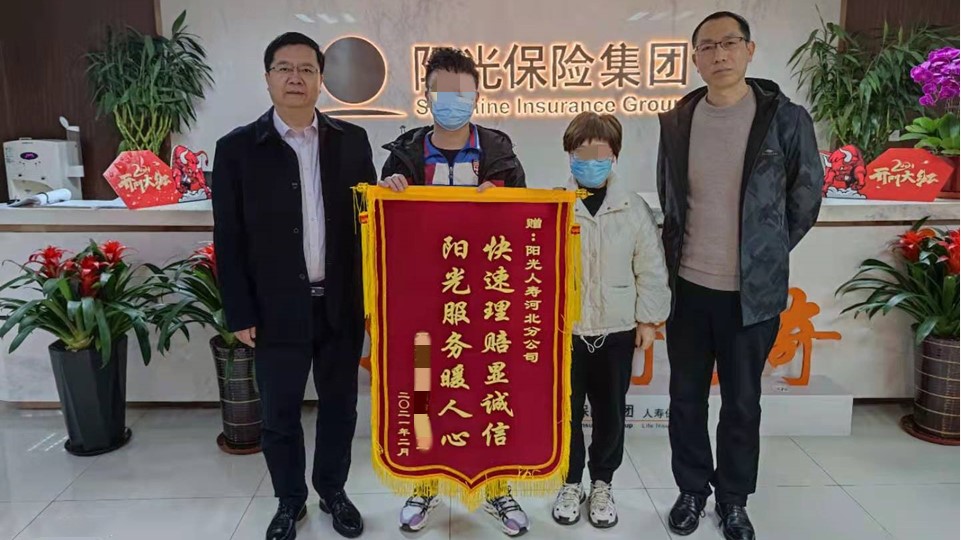 2月26日下午,解女士的丈夫来到阳光人寿河北分公司,赠送了印着“快速理赔显诚信,阳光服务暖人心”的锦旗,表达衷心的感谢。阳光人寿河北分公司运营总监李新立接待了客户并表示,“爱从一份保障开始,我公司将始终秉承‘一切为了客户’的核心价值观,践行‘爱与责任’的阳光文化,让人们拥有更多的阳光”。
